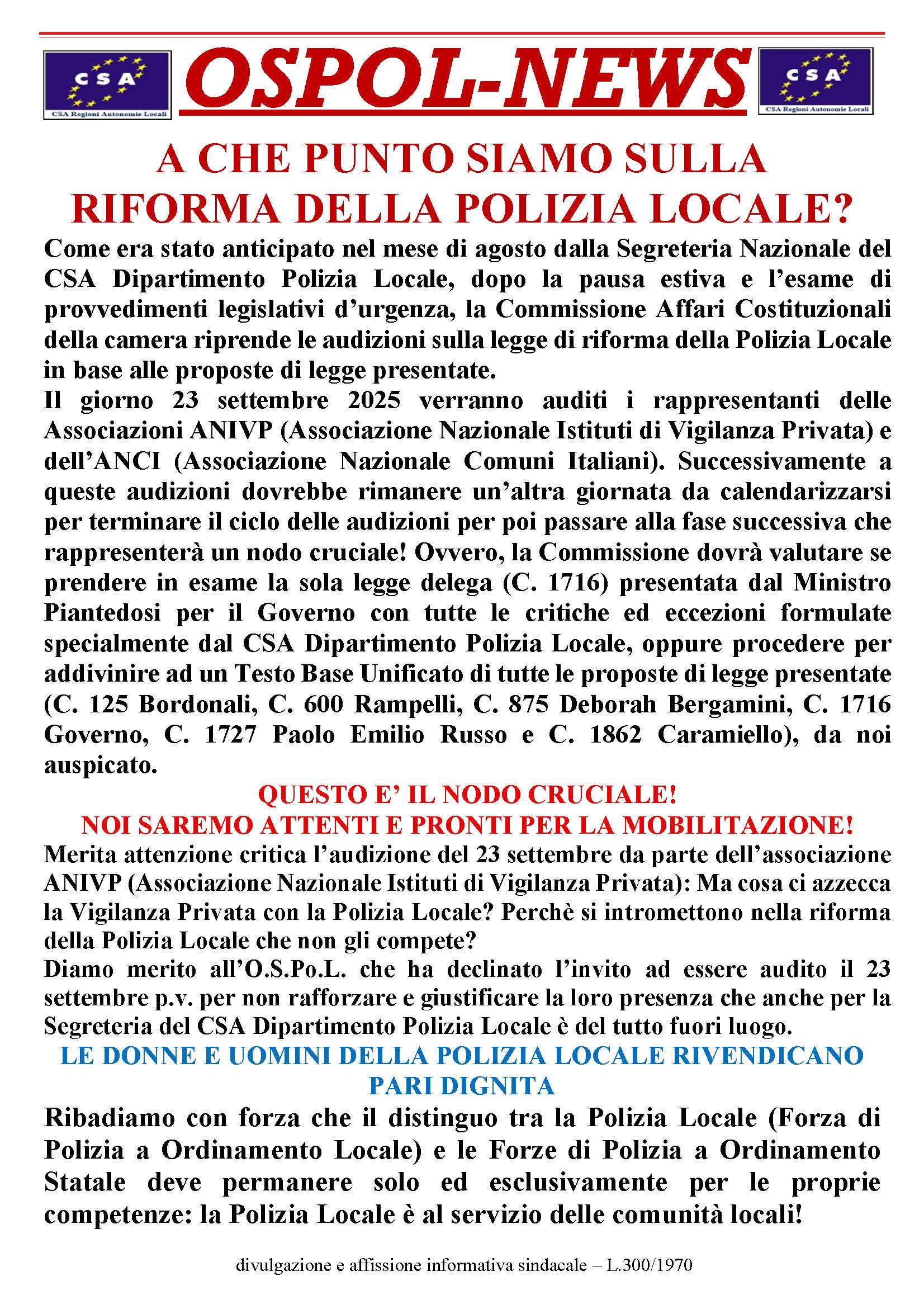DELL'AUDIZIONE O.S.PO.L.